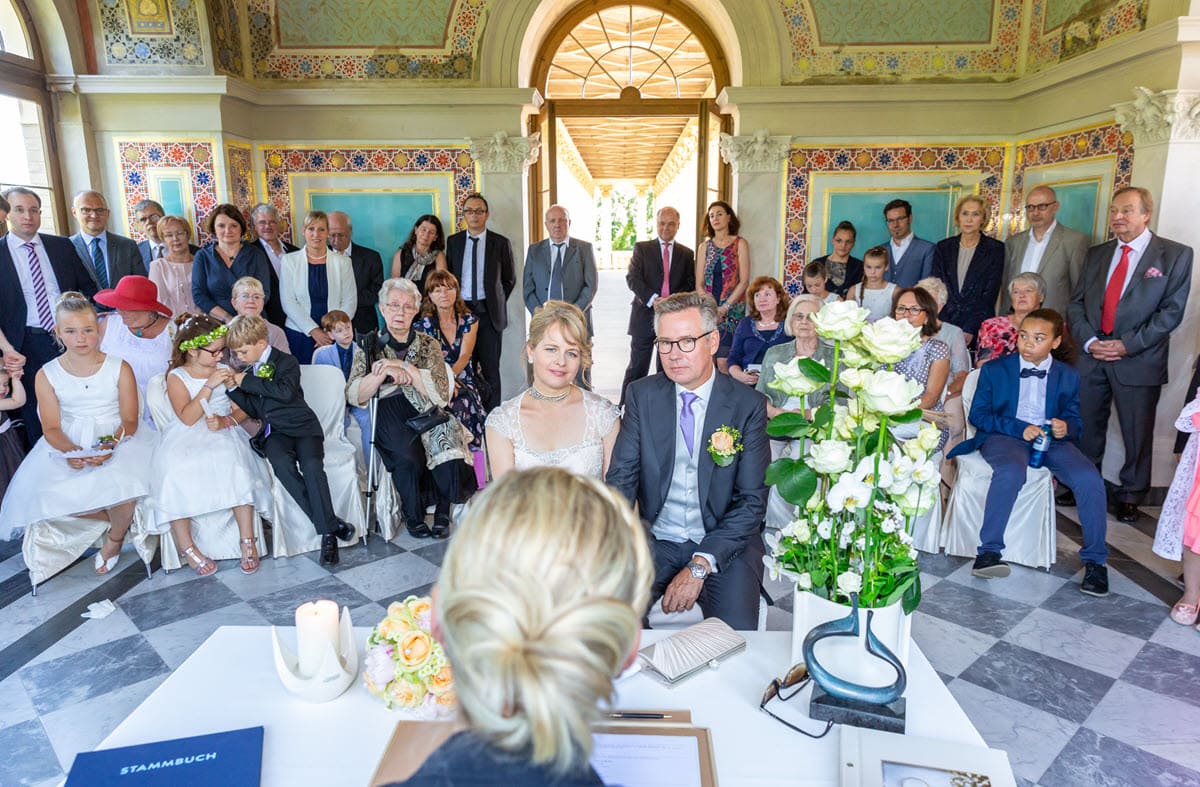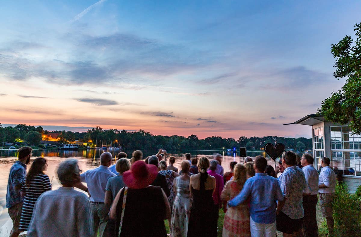 Mitte 2018 galt es, eine große Hochzeitsgesellschaft vom Standesamt durch die gesamte Party zu begleiten. Da die Feier außerhalb Berlins im berühmten Pfingstberg-Ensemble stattfand, lud man die Gäste ein, über Nacht zu bleiben und eröffnete sich damit einen langen Abend, eine kurze Nacht und am nächsten Tag genug Zeit, sich wirklich jedem Gast zu widmen.